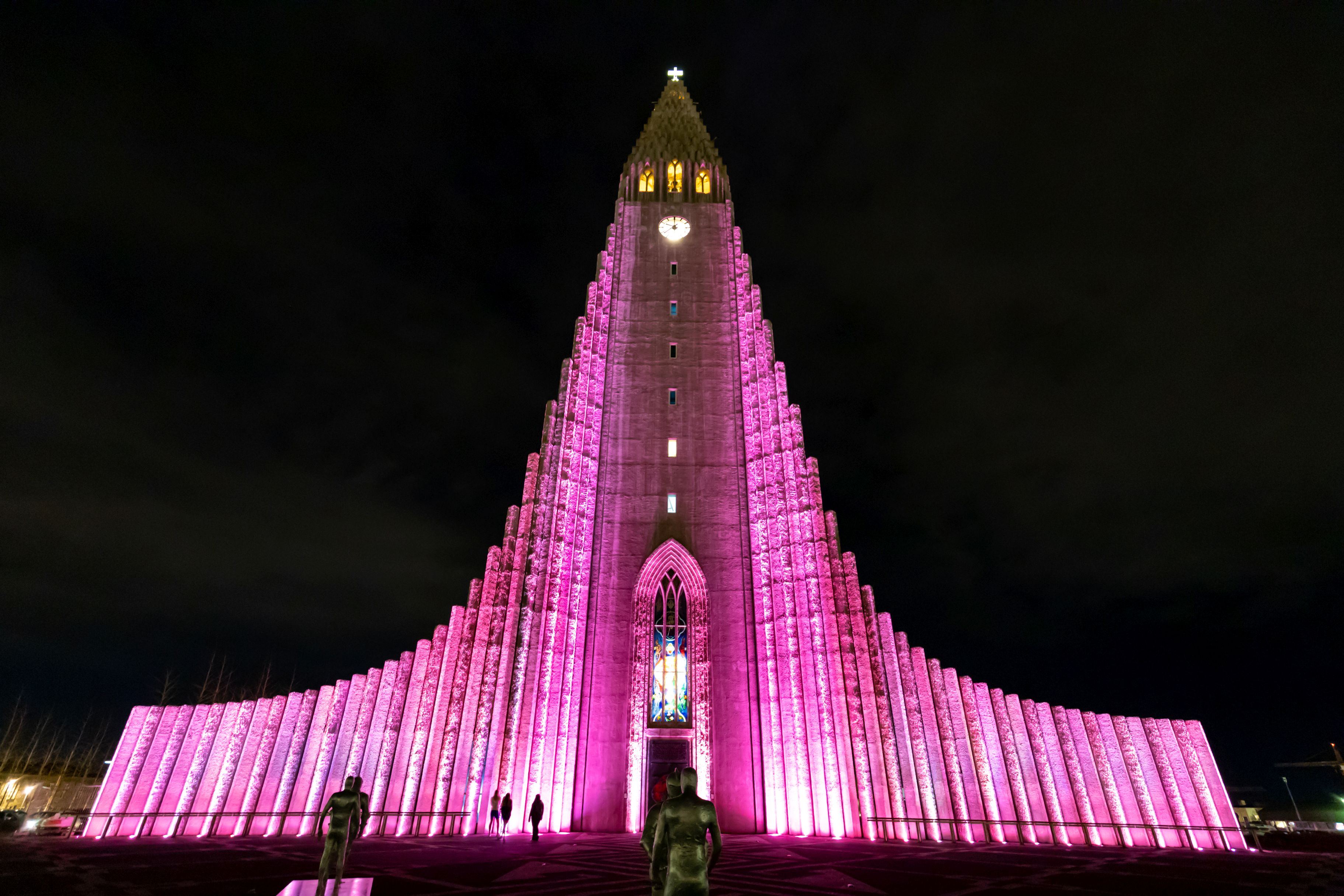 Hallgrímskirkja ist probably the most famous landmark of Reykjavik. With 74.5 m (244ft) it is the second highest building of the country and known for its unique triangle shape, that gets colorfully illuminated at night.