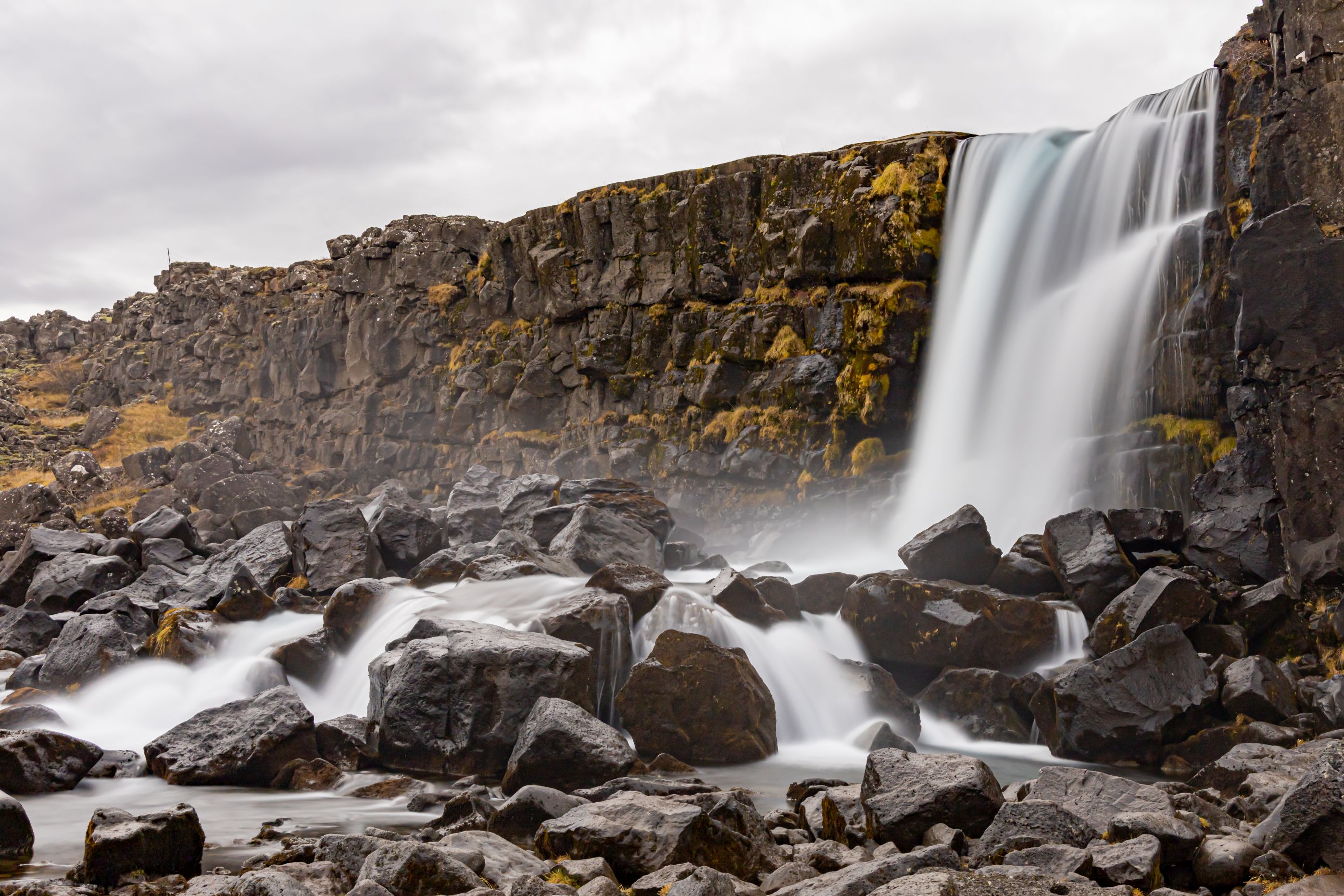 Þingvellir (pronounced "thing-vɛtlɪr") is a historic and natural site located in southwestern Iceland. It is known for being the location of the first Icelandic parliament, the Alþing, which was established there in 930 AD and continued to meet at Þingvellir until 1798. The site is also significant for its unique geology, as it lies on the boundary between the North American and Eurasian tectonic plates. Here, visitors can observe the visible signs of plate tectonics, including fissures and cracks, and walk through the Almannagjá gorge which marks the boundary between the two plates. Þingvellir National Park was established in 1930 to protect the area's natural and cultural heritage and has been designated a UNESCO World Heritage site. The park offers a variety of outdoor activities, including hiking, snorkeling, and scuba diving in the clear waters of Silfra fissure. Þingvellir is also a popular location for viewing the Northern Lights in winter and is a key stop on the Golden Circle tourist route, which includes visits to several other popular attractions in Iceland, including Gullfoss waterfall and Geysir hot springs. The historic site of Thingvellir (Þingvellir) is known for being the location of the first Icelandic parliament, the Alþing, which was established there in 930 AD and continued to meet at Þingvellir until 1798. Also, again we are on the boarder of the American and Eurasian tectornic plates, which shows in the unique landscape.